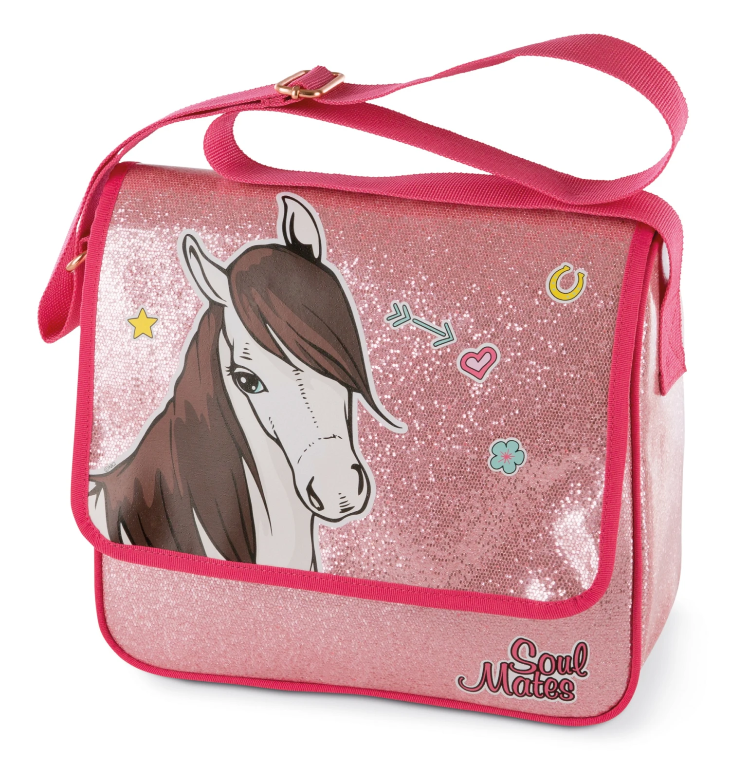 Mit glitzernd rosa Motiv des Mustangs Ayeta.