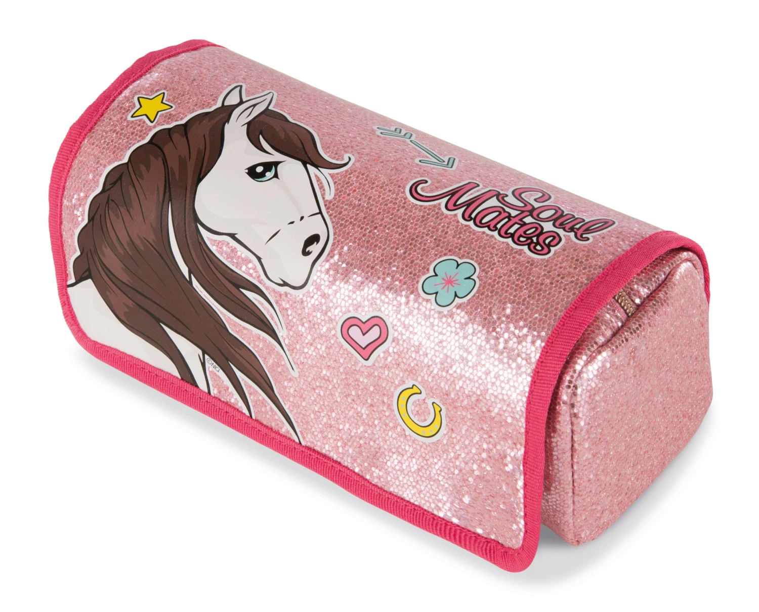 Hübsches Mäppchen mit rosa Glitzereffekt und Pferdemotiv von Mustang Ayeta