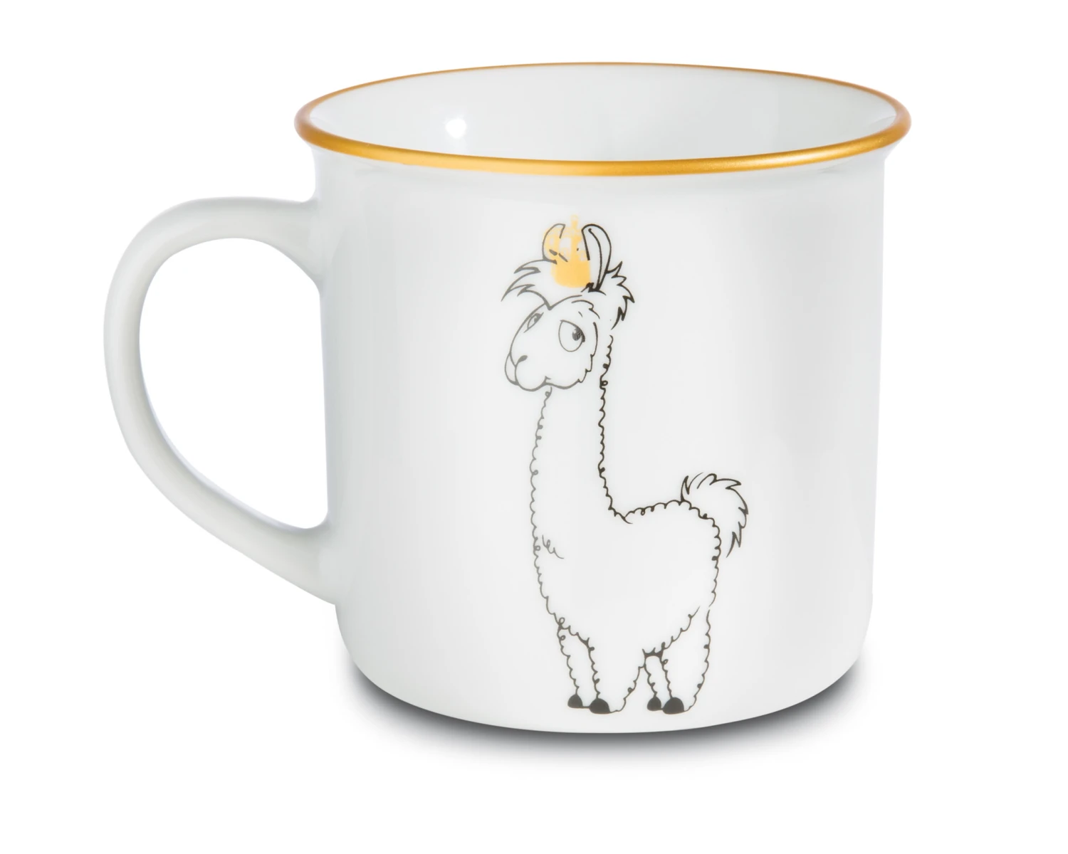 Die Porzellantasse ist im angesagten Mettalic-Look gehalten und mit super niedlichen Illustrationen verziert.