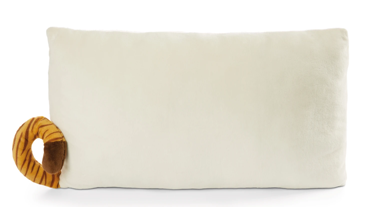 Der Schwanz steht aus dem Kissen heraus. Rückseite unifarben.